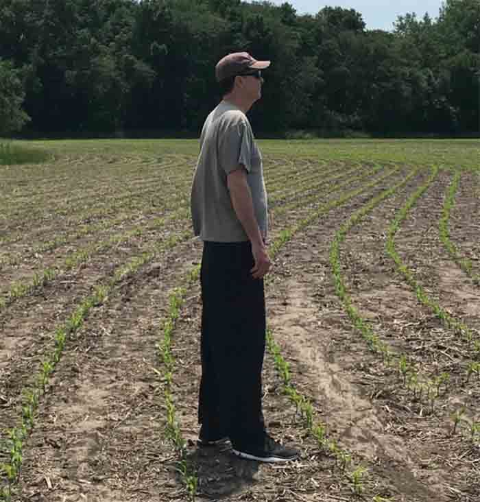 He is pictured under a sky that looks like it has been ELFed or chem trailed, in a corn field, plus, looking at an orange/yellow sun. Our sun has not looked yellow in a LONG time, it looks white. Obama recently did a post from Kenya just like that one, though his was more orange.