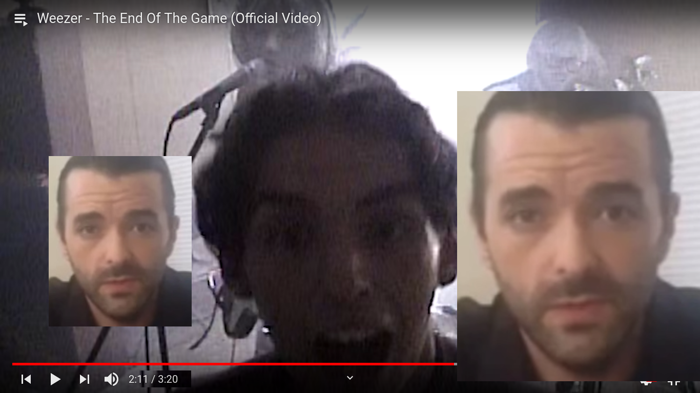 See how his left eye (on your right) is closer to his nose in the Weezer video? See how his hair is parted? See his nose? See how he has a smooth sloping boyish jaw line, and not a broad sharp squarish man one like most of the inverted sex (MTF) hollyweird females?