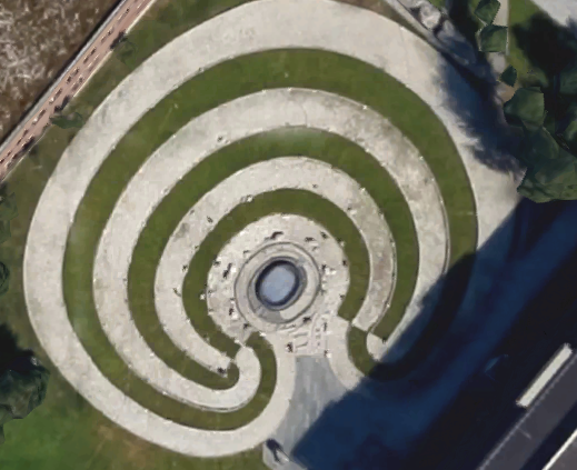 The so called labyrinth (think about the blue and white around the picture of the arena in the book)